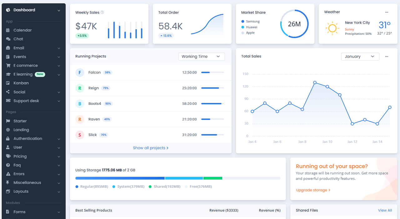 Nossos sistemas possuem um dashboard intuitivo que oferece uma visão geral completa das principais métricas e indicadores de desempenho, permitindo que você monitore vendas, estoque, pedidos e clientes em tempo real.